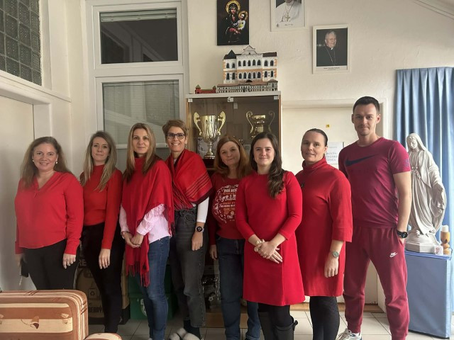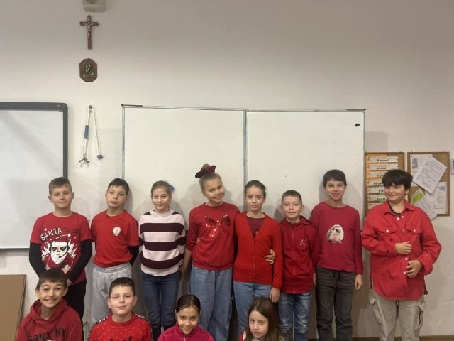 Všetci naši zamestnanci aj žiaci prišli oblečení v červenej farbe, ktorá symbolizuje krv preliatu za vieru, odvahu, obetu a solidaritu s tými, ktorí aj dnes trpia pre svoje presvedčenie.