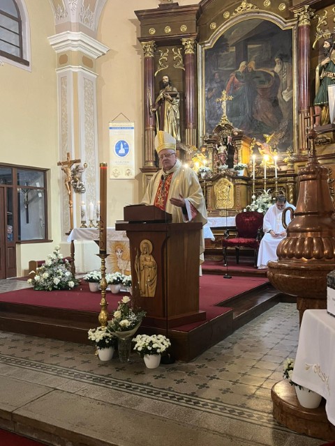 Slávnostnú svätú omšu celebroval Mons. Stanislav Stolárik, rožňavský diecézny biskup. Vo svojom príhovore povzbudil pedagógov a poďakoval im za ich obetavú prácu.